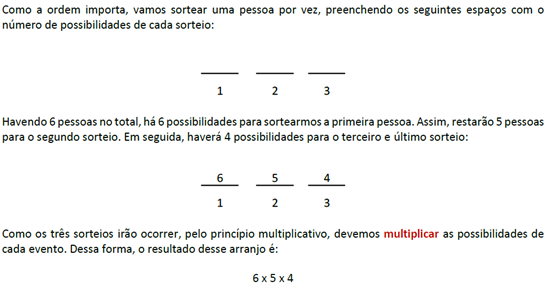 A ordem dos elementos selecionados será relevante para o arranjo, mas não para a combinação