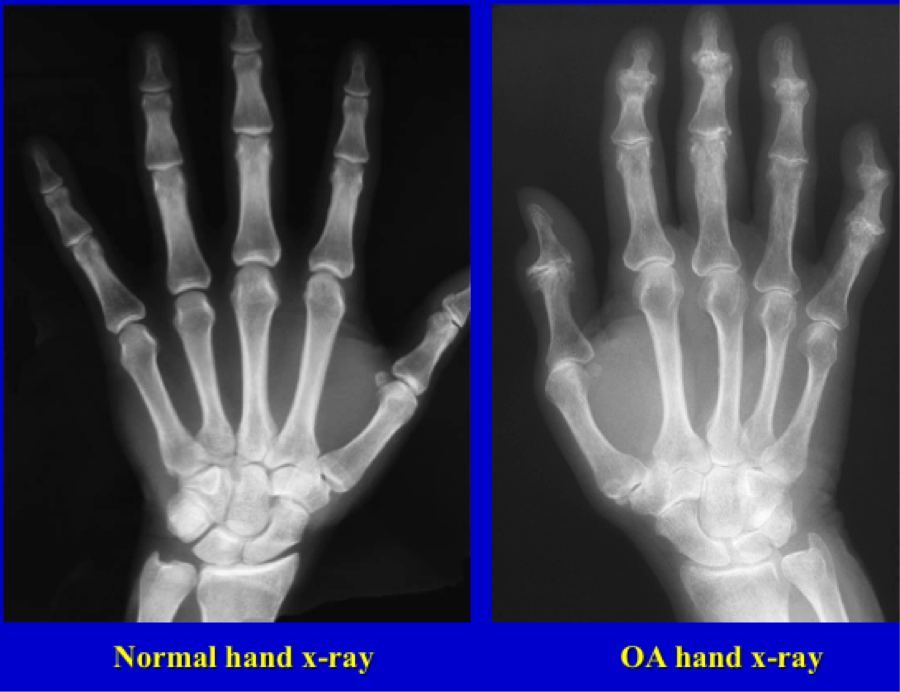 -Females 4x more likely to have hand involvement than men (more freq found post-menopause). especially basilar thumb joint (first carpometacarpal - CMC).