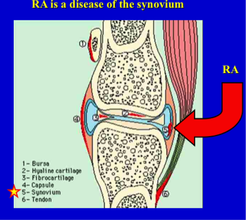 RA is a disease of what part of the joint?