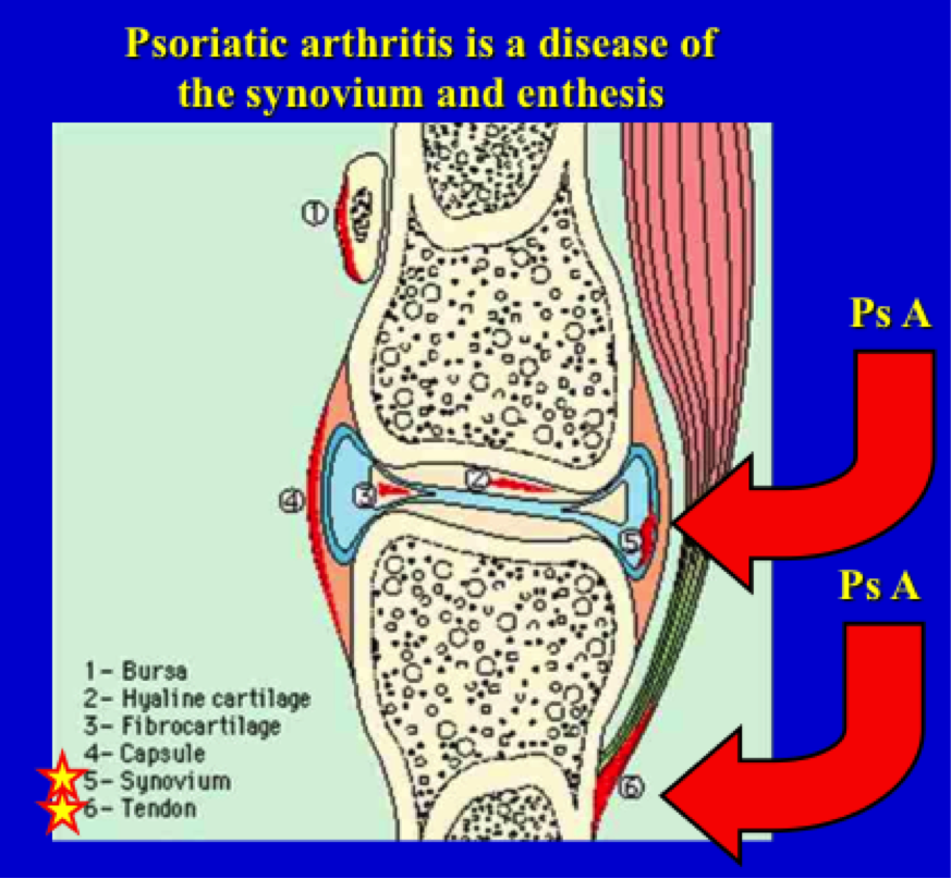 psoriatic arthritis is a disease of what part of the joint?