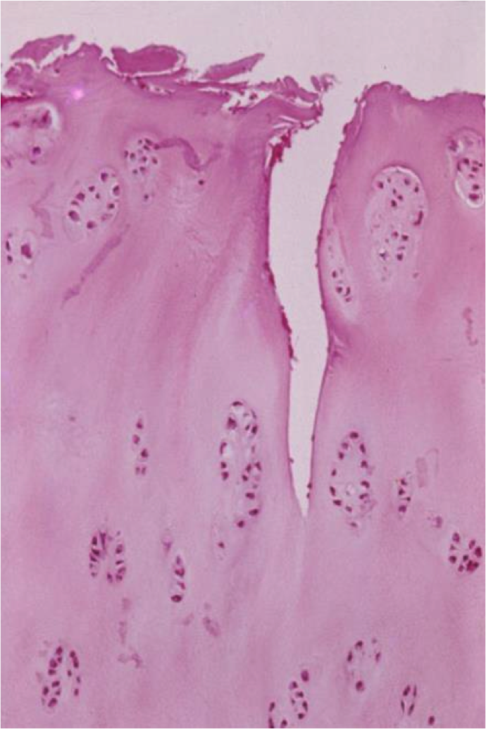 what happens to cartilage in early OA, at the histological level?