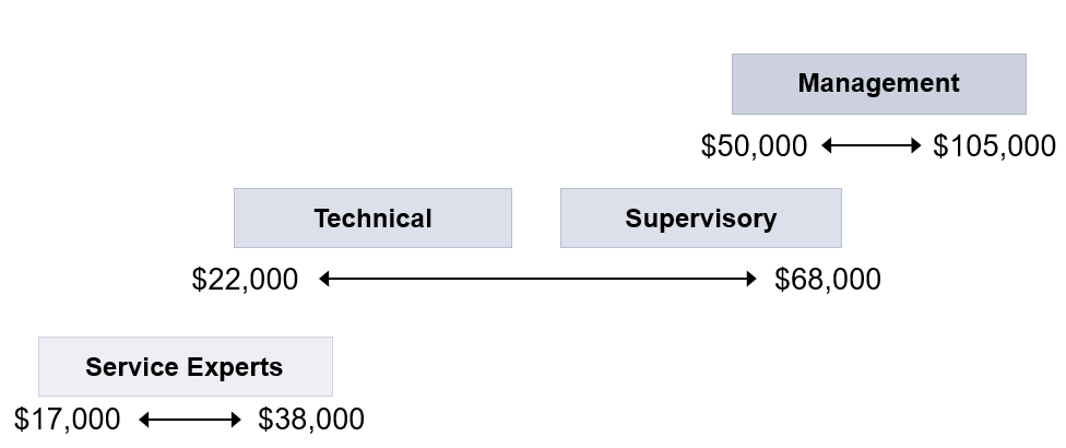 • Provides wider ranges than the spread of a traditional pay range; generally permits the movement of individuals between jobs without being overly limited by pay ranges