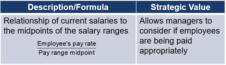 • Divide the pay rate of an employee by the midpoint of the range.