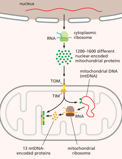 1. Las proteínas chaperonas (en especial las llamadas Hsp70) las van a llevar a la mitocondria donde van a ser reconocidas por una translocasa conocida como TOM