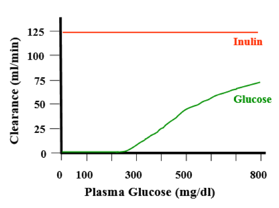 For a substance that is reabsorbed, such as glucose, as the amount filtered increases, the transport mechanism that reabsorbs it becomes saturated and there is a progressively an increasing amount of the substance that escapes reabsorption and is excreted. Because of this, a larger fraction of the filtered fluid is returned to the circulation cleared of the substance. That is, the clearance rate increases.