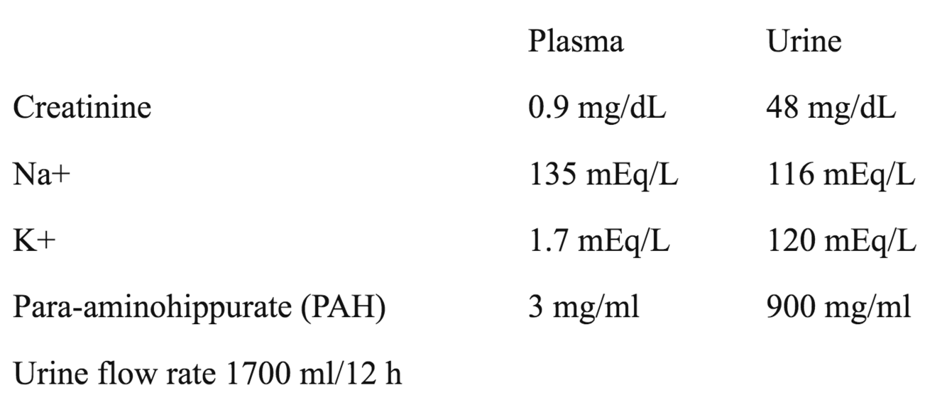 In this manner: RPF = UPAH . V / PPAH = 900 mg/ml . 2.36 ml/min / 3 mg/ml = 708 ml/min.