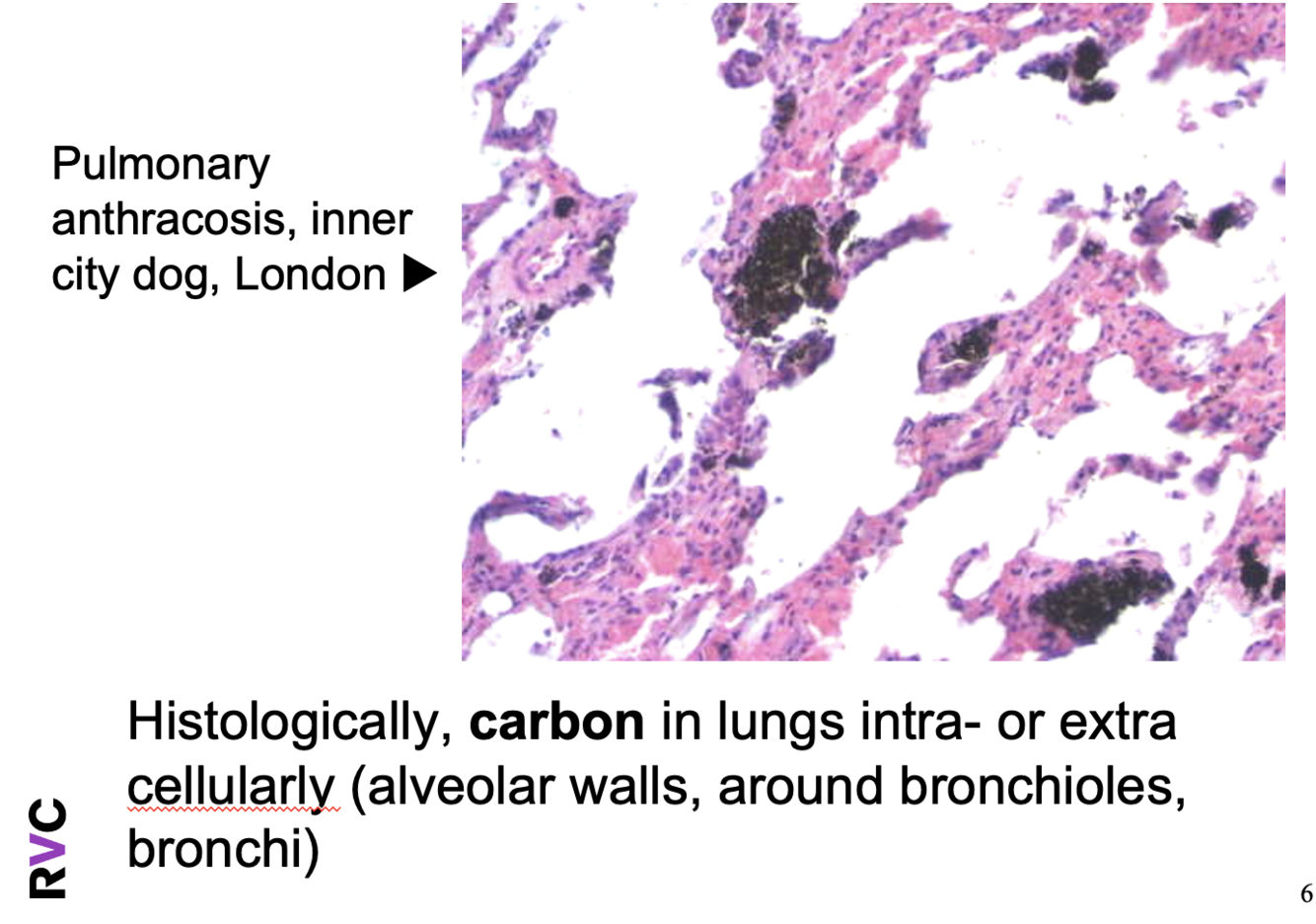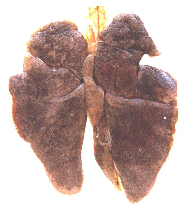 Pulmonary anthracosis, inner city dog , london