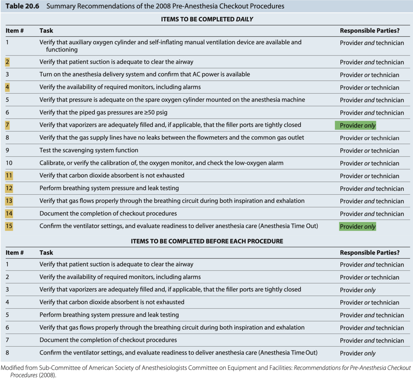 Summary Recommendations of the 2008 Pre- Anesthesia Checkout Procedures