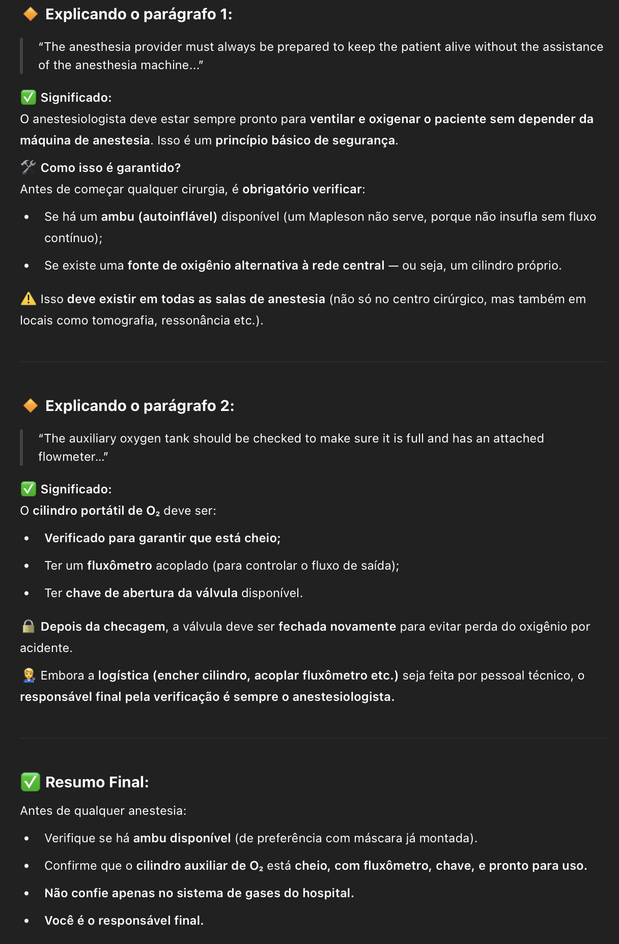 (Item 1). O que o anestesiologista deve verificar diariamente antes de iniciar qualquer procedimento, para garantir ventilação e oxigenação em caso de falha da máquina de anestesia? (2)