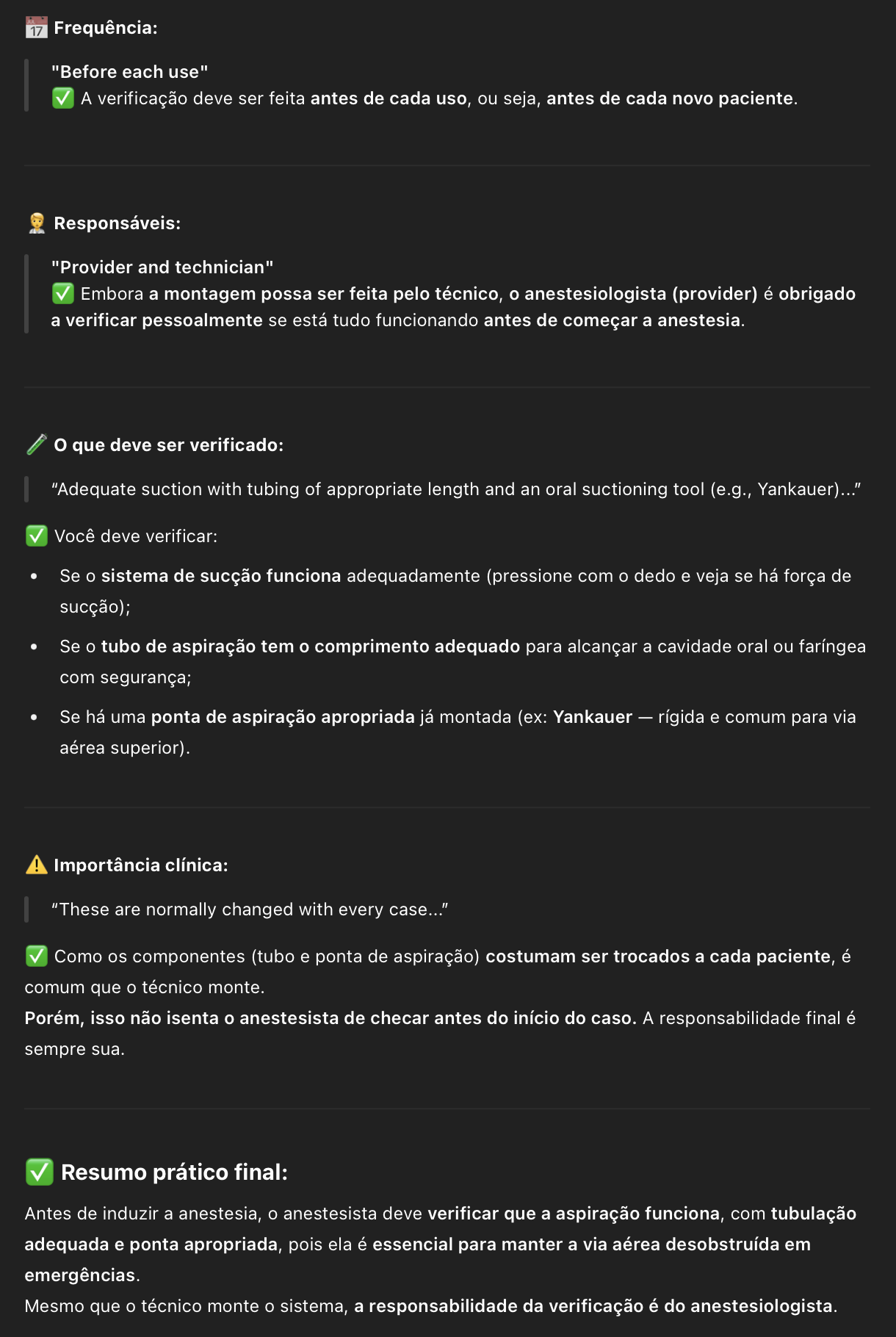 (Item 2). O que o anestesiologista deve verificar quanto à aspiração antes de iniciar cada anestesia? (3)