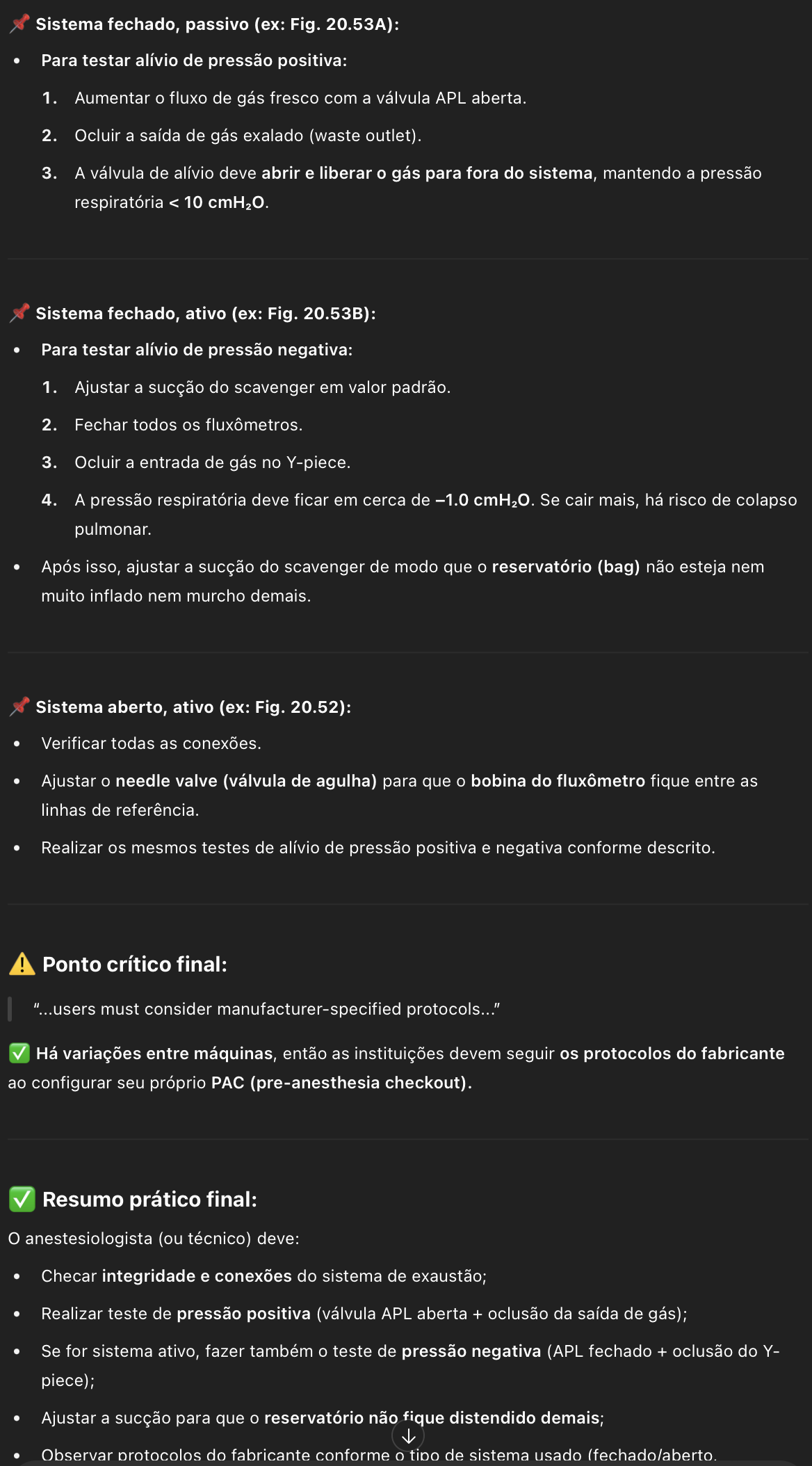 (item 9). Como o anestesiologista deve testar diariamente o sistema de exaustão de gases anestésicos (scavenger)? (2)
