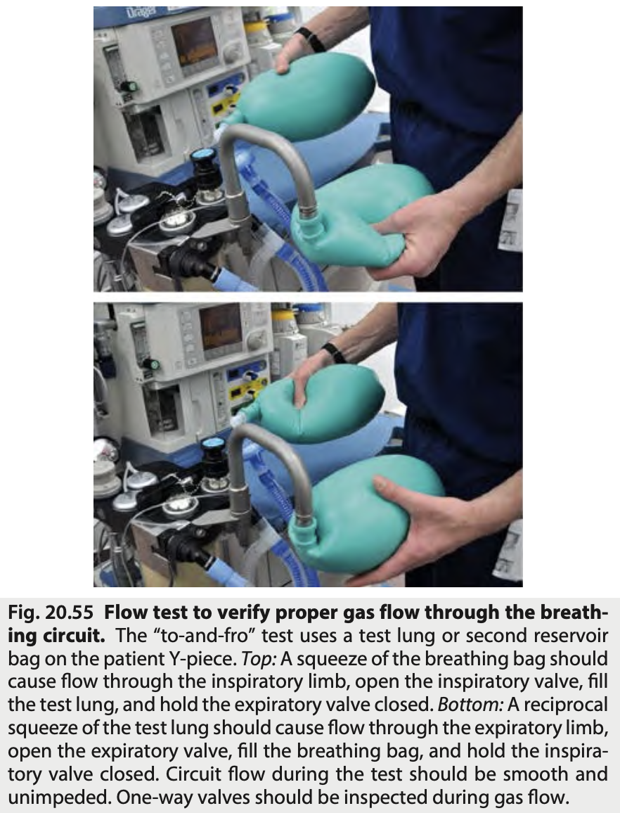 (Item 13). Como o anestesiologista deve testar o fluxo de gás e as válvulas do circuito respiratório antes de cada anestesia?