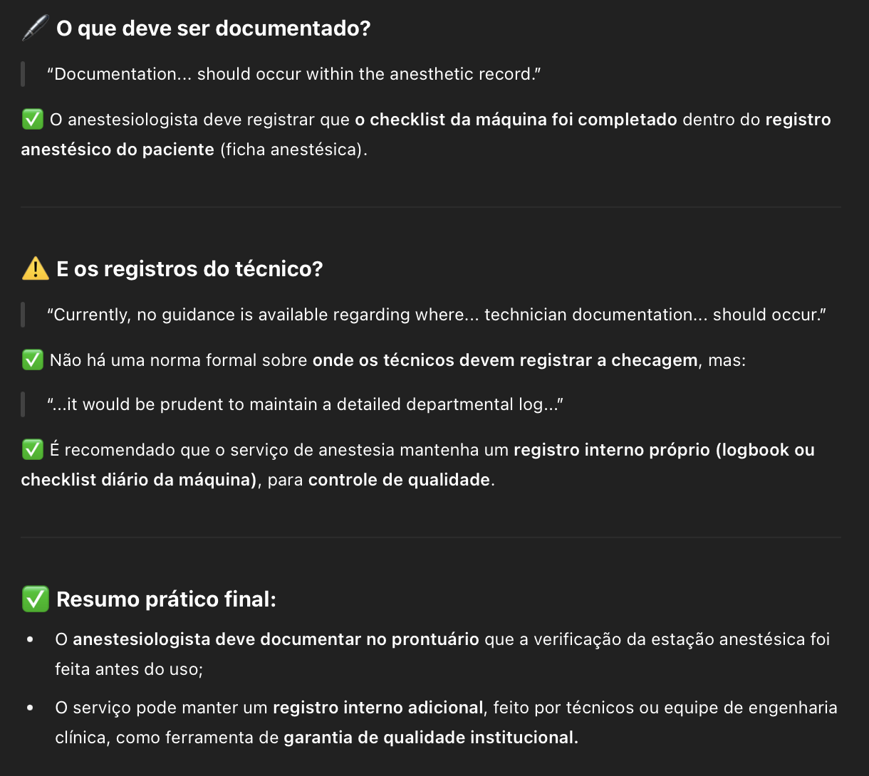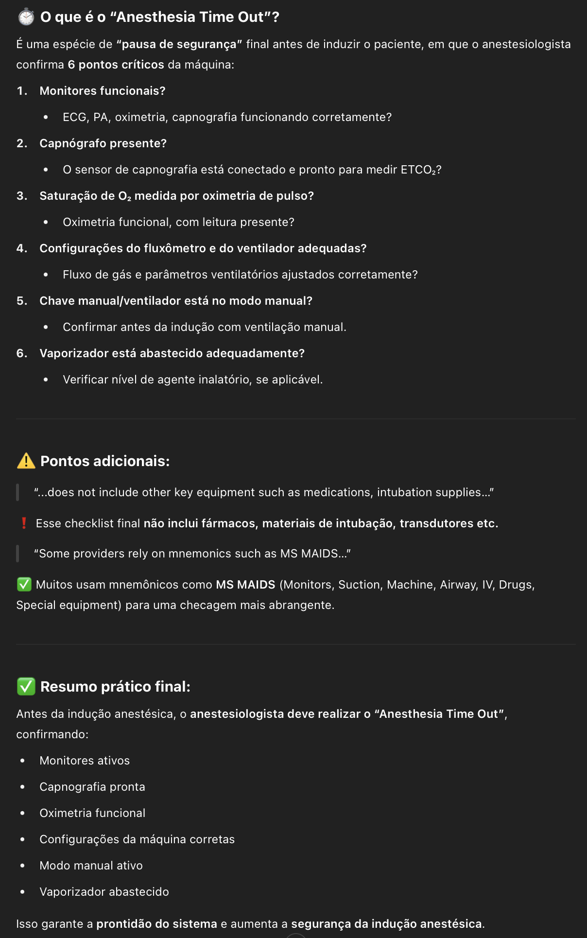 Esse “time out” garante a prontidão da estação anestésica e é de responsabilidade exclusiva do anestesiologista.