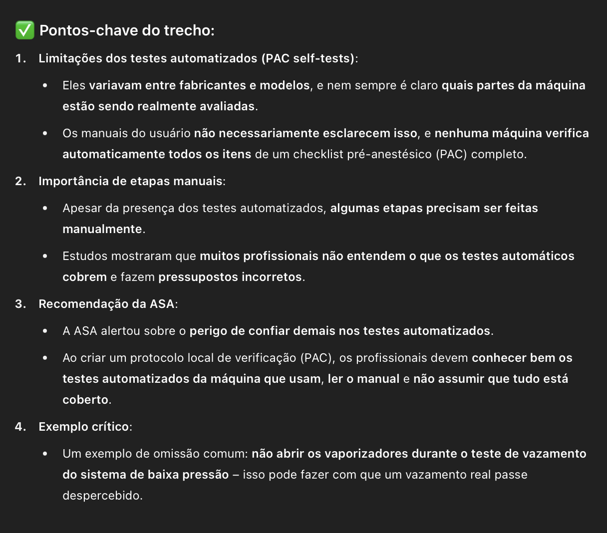Os testes automatizados de verificação (PAC) cobrem todos os itens de segurança da máquina de anestesia?