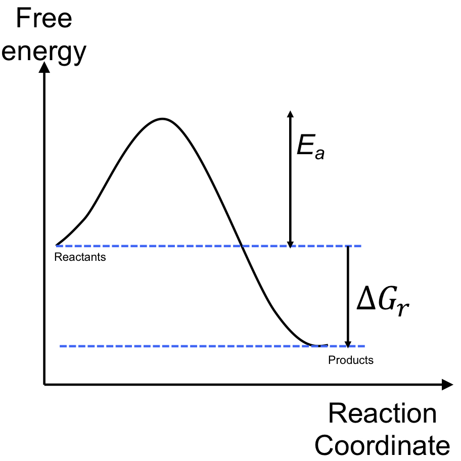 THERMODYNAMICS : ΔG governs how if the reaction is thermodynamically favourable (ΔG < 0) - investigates reaction E changes (feasible / unfeasible)