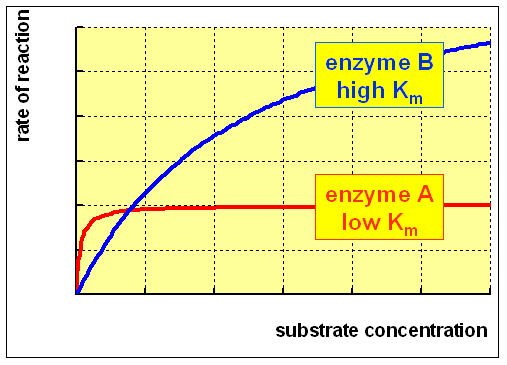 Low Km - strong E-S binding: need less [S] to occupy half active sites