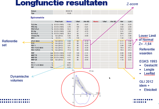 Welke informatie kan er allemaal uit een longfunctie gehaald worden?