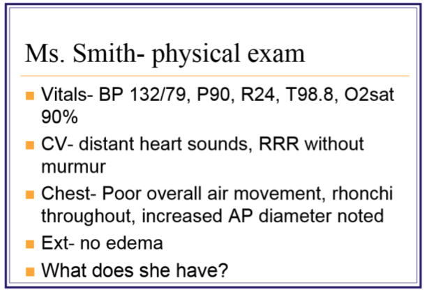 Patient has 60 pack year history of smoking. Physical examination yields the following on the attached image. What does she have?