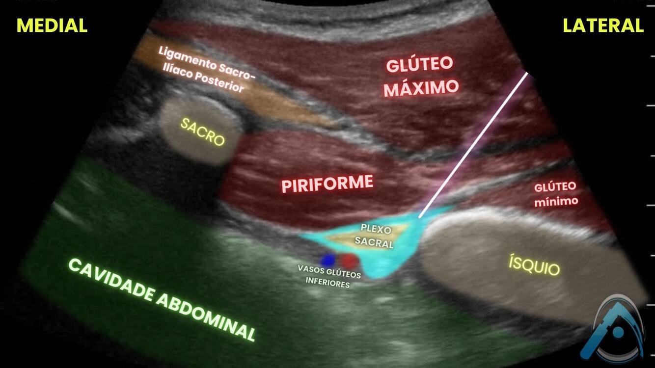 Você já viu o bloqueio do plexo sacral guiado por USG? Identifique as estruturas em destaque:
