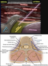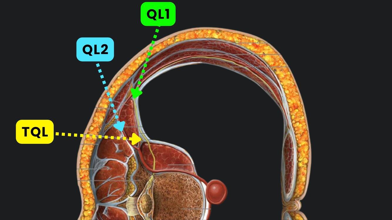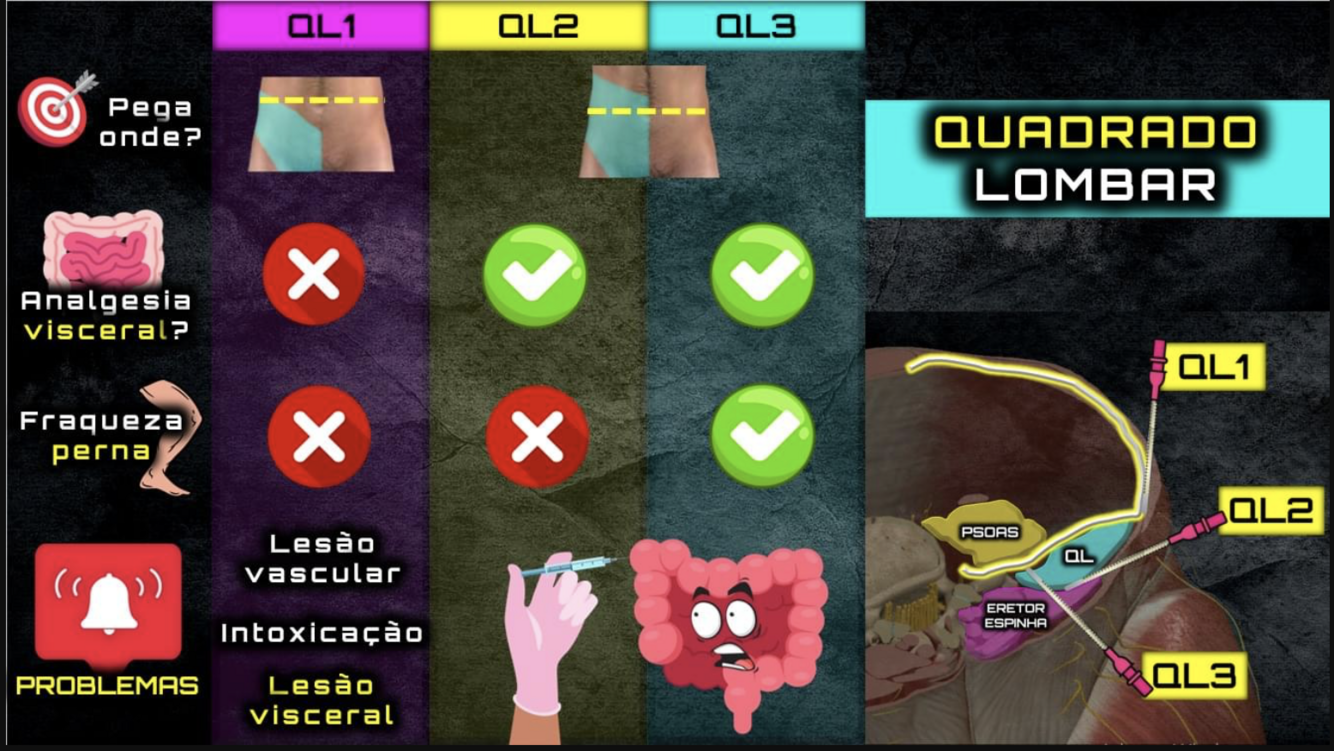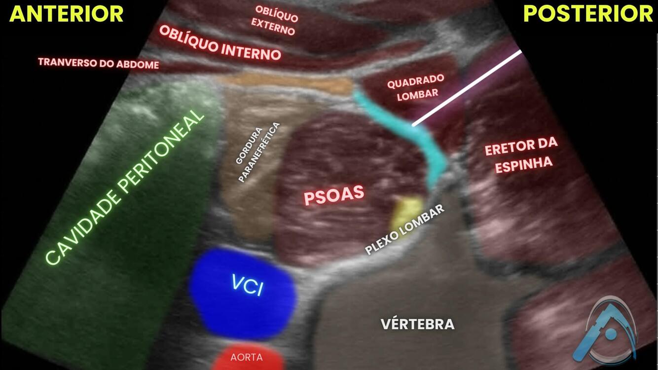 Realizando o bloqueio quadrado lombar via anterior, quais são as estruturas em destaque?
