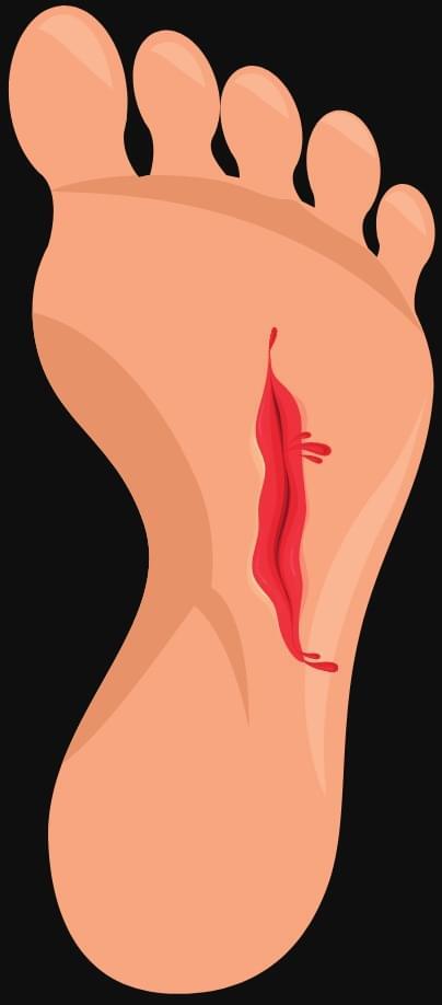 Em relação à lesão ilustrada no pé (em vermelho), que nervo é responsável pela inervação sensitiva da face plantar do pé?
