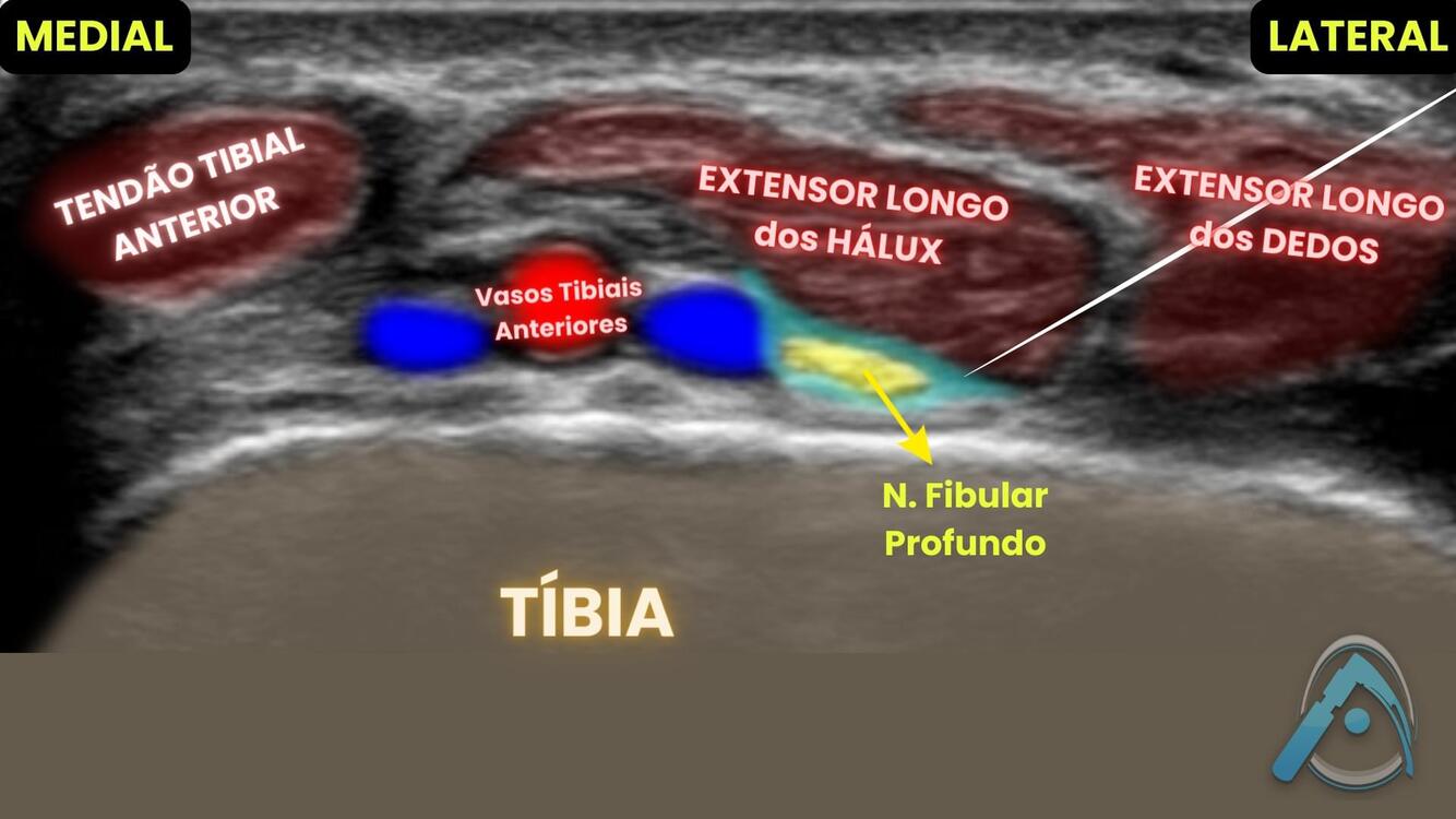 Essa é a janela para bloqueio do nervo fibular profundo na altura do tornozelo.