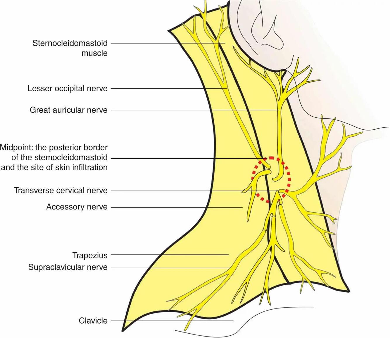 Identificar as estruturas do bloqueio do plexo cervical abaixo: