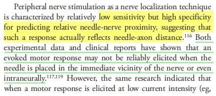 D. Trecho do Hadzic: “se a agulha está muito próxima ou dentro do fascículo nervoso, pode ser que não exista resposta motora ao estímulo”