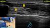 Essa janela é de um bloqueio de membro inferior para cirurgia no tornozelo. O que são as estruturas em destaque?