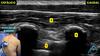 Realizando o bloqueio abaixo para analgesia de joelho, o que são as estruturas apontadas?