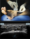 Realizando o bloqueio abaixo para um procedimento no pé, o que são as estruturas em destaque?