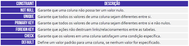 São um conjunto de limitações utilizadas para especificar regras para os dados em uma tabela de um banco de dados relacional