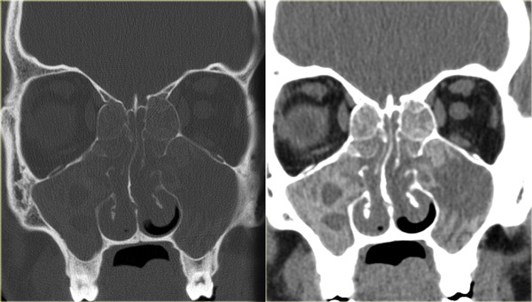 These patients tend to have significant burden of polyps and over a prolonged period of time the thick, eosinophilic mucin can act as a benign soft tissue denisty in the paranasal sinuses with possible expansion into nearby structures, including the orbit and cranium. Treatment is with a combination of medical and surgical therapy, similar to other cases of chronic sinusitis. Neither systemic or topical antifungal therapy has been shown to improve treatment outcomes in this population.