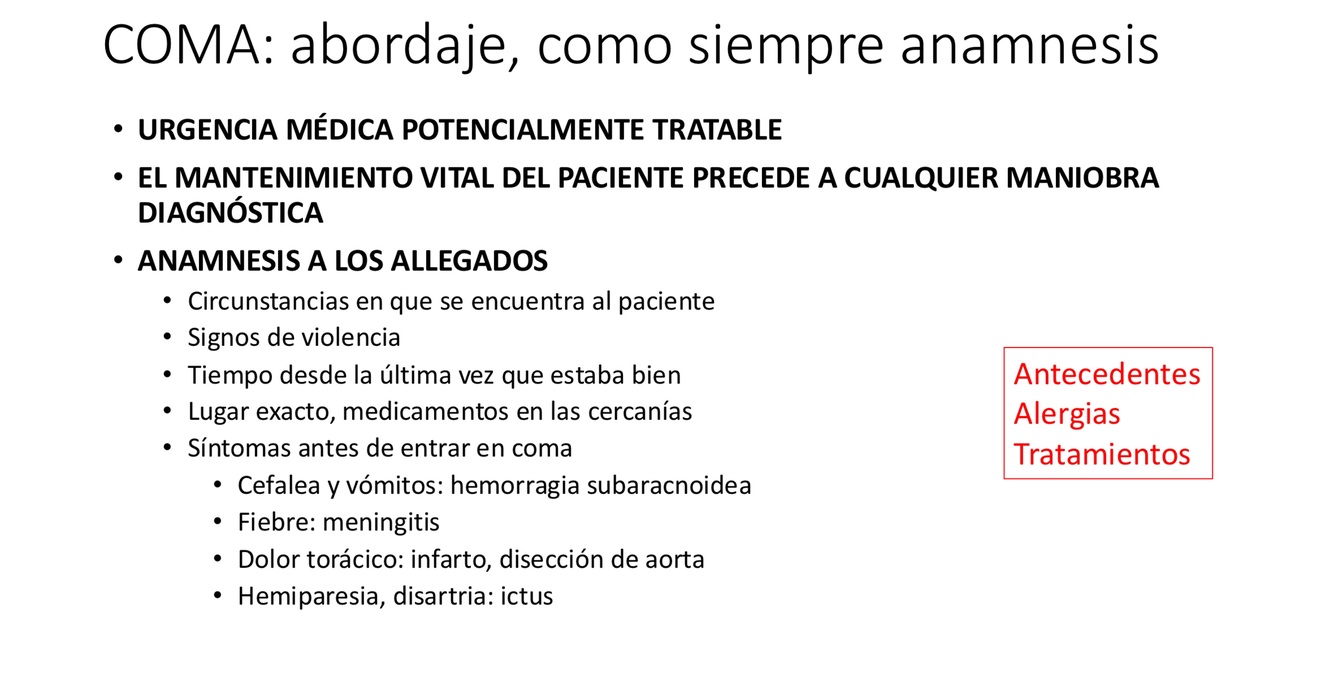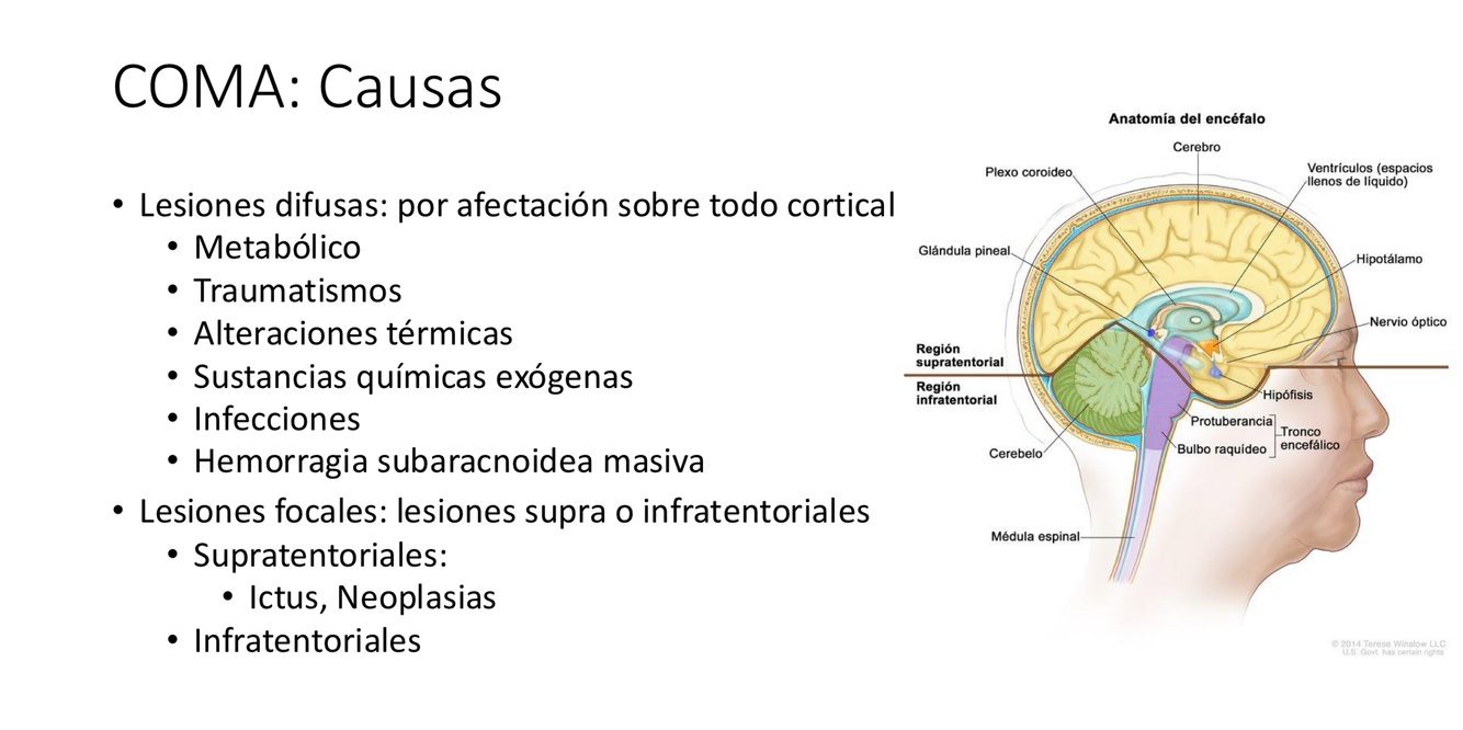 Estado patológico caracterizado por la disminución del nivel de conciencia que, a diferencia del sueño, no es reversible bajo la influencia de estímulos externos