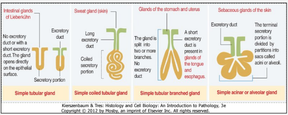 • Exo refer to the fact that secretions come out of the gland onto an external epithelial layer, rather than internally into the blood stream or extracellular fluids, like endocrine glands