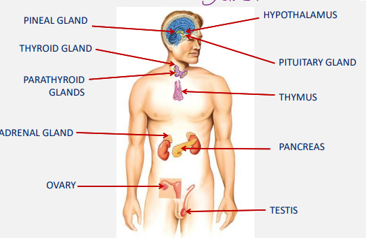 • This system is regulated by a negative feedback control, where products can inhibit hormones produced earlier in the chain, stimulate glands to produce inhibitory hormones, or inhibit glands from producing hormones