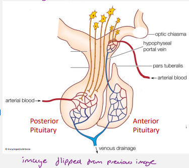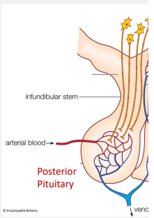 • The posterior lobe of the pituitary is technically not an endocrine gland, as it does not synthesise its own hormones
