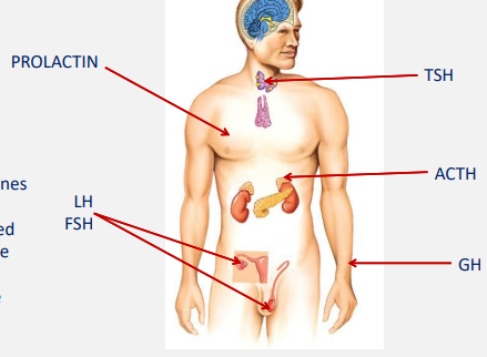 • The 6 hormones synthesised and secreted by the anterior pituitary in response to stimuli from hypothalamus: