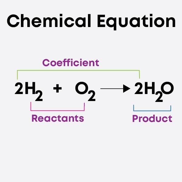 For example, in 2H₂ + O₂ → 2H₂O, the coefficient 2 shows there are two molecules of hydrogen gas reacting to form water.