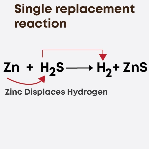 An example is Zn + 2HCl → ZnCl₂ + H₂, where zinc replaces hydrogen in hydrochloric acid.