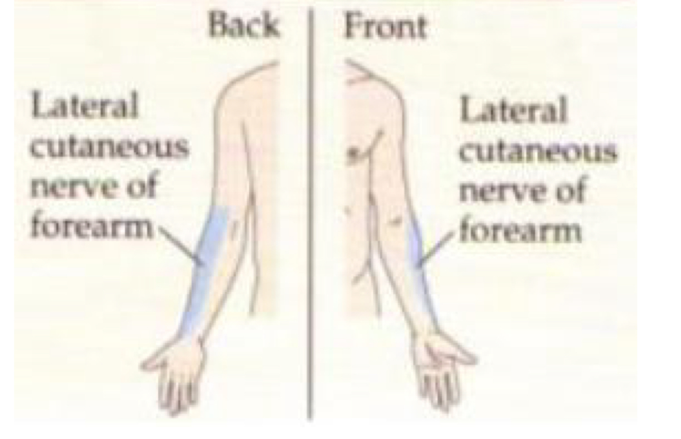 Quelle est la zone sensitive du nerf musculo-cutané?