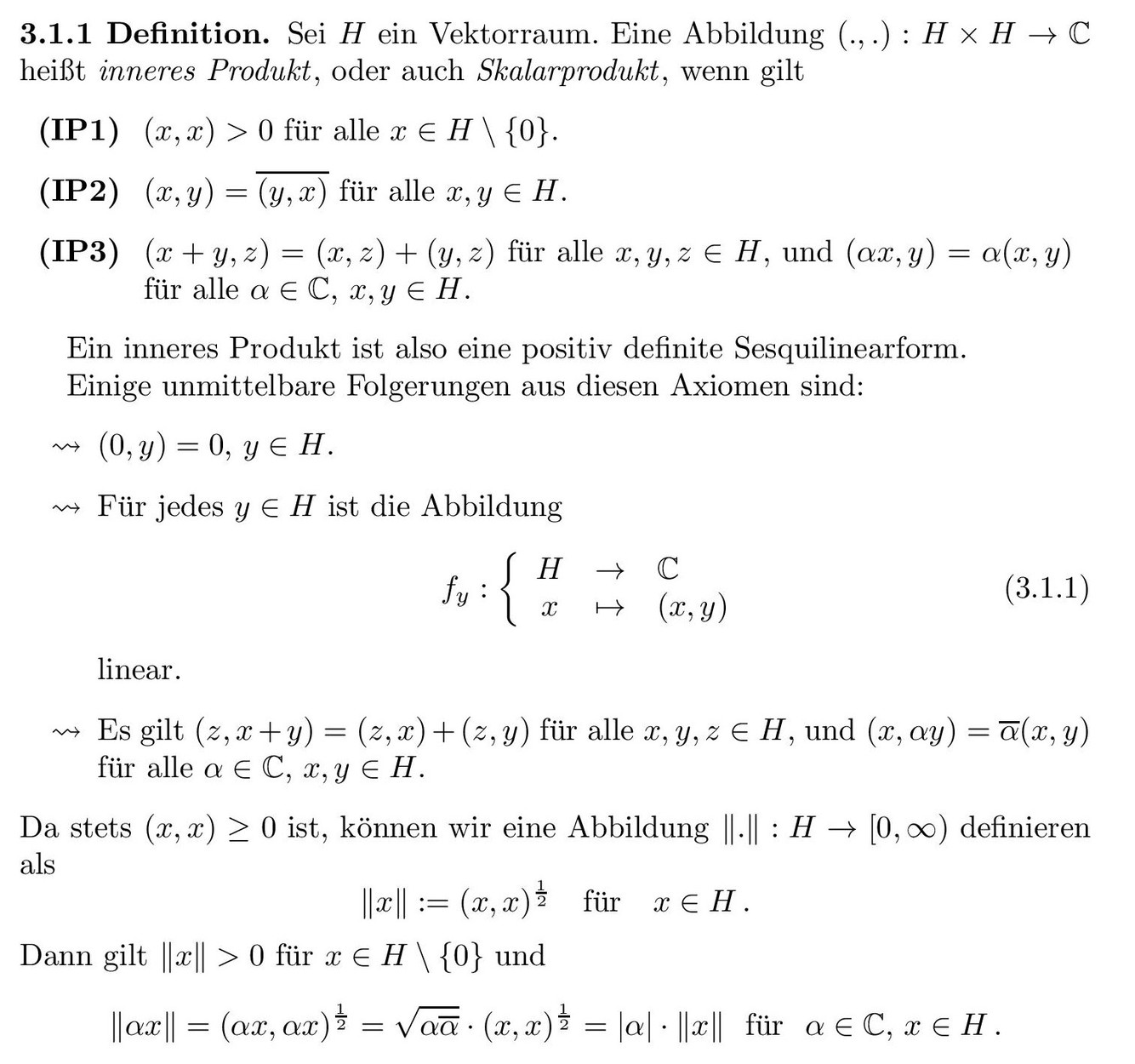 Definiere das Skalarprodukt auf einem Vektorraum!