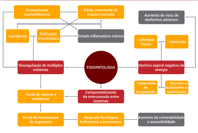 Síndrome fisiológica caracterizada pela redução da reserva e pela resistência diminuída a estresses resultantes do declínio cumulativo de diversos sistemas fisiológicos, causando vulnerabilidade às condições adversas e alto risco de morte.