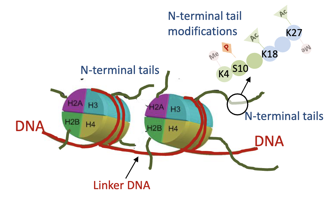histone proteins 2X( H2A, H2B, H3, H4) on