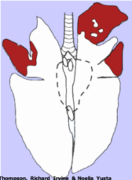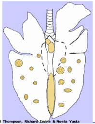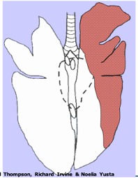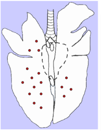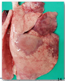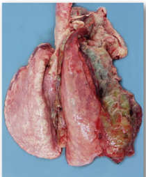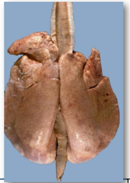 * Affected parts: usually the cranioventral lung regions. They feel consolidated/hard and not spongy.