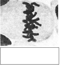 Chromosomes are positioned along equator of cell by spindle fibres.