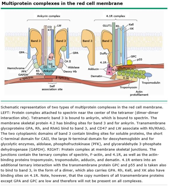 [UpToDate: Hereditary spherocytosis (HS) is a result of heterogeneous alterations in genes that encode for proteins involved in the vertical associations that tie the red cell’s inner membrane skeleton to its outer lipid bilayer. The resistance and elastic deformability of red cells are due to a cytoskeleton that underlies the lipid bilayer and to proteins that provide vertical association of the cytoskeleton with the bilayer. A number of interconnected proteins are involved in the coupling of the cytoskeleton to the lipid bilayer.