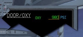 On the DOOR/OXY page, what is the current pressure of the flight deck oxygen system?
