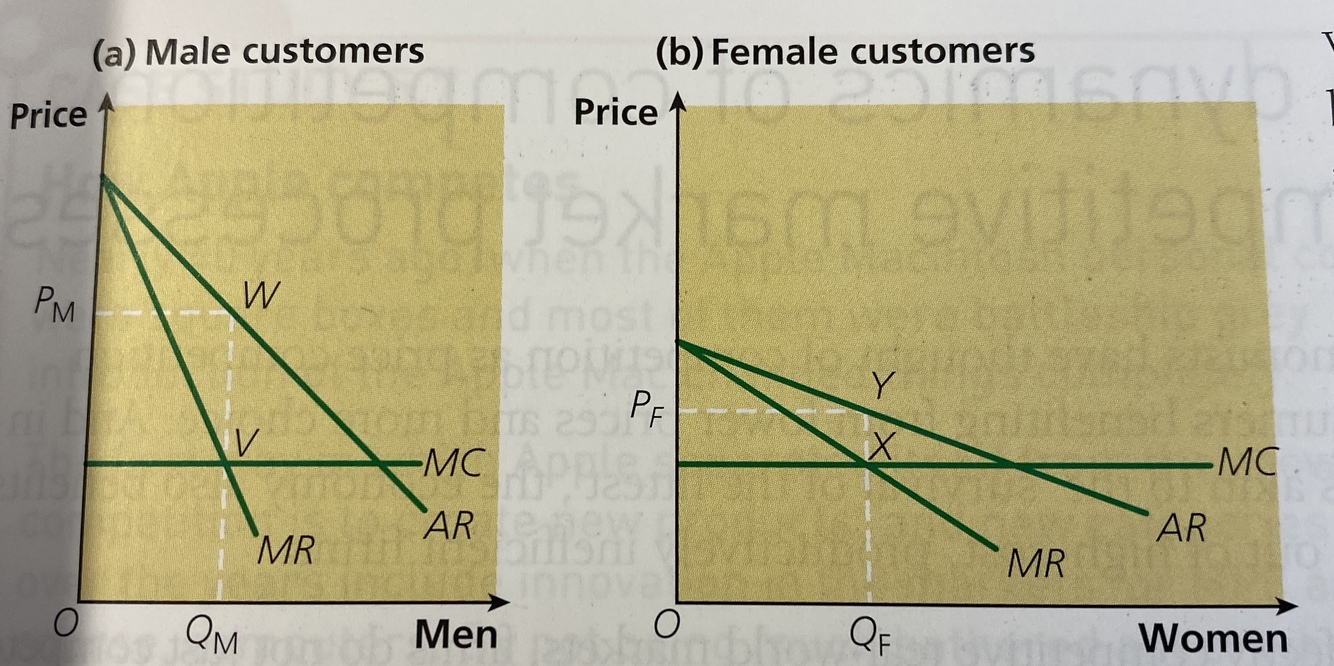 Profit is maximised when more price sensitive women pay less than less price sensitive males.