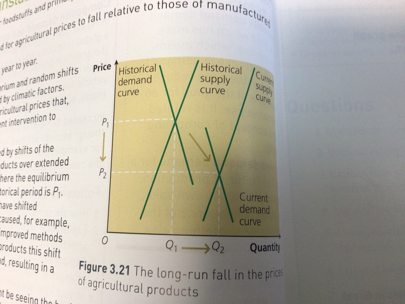 -long-run trend for agricultural prices to fall in comparison to manufactured goods(until recently)